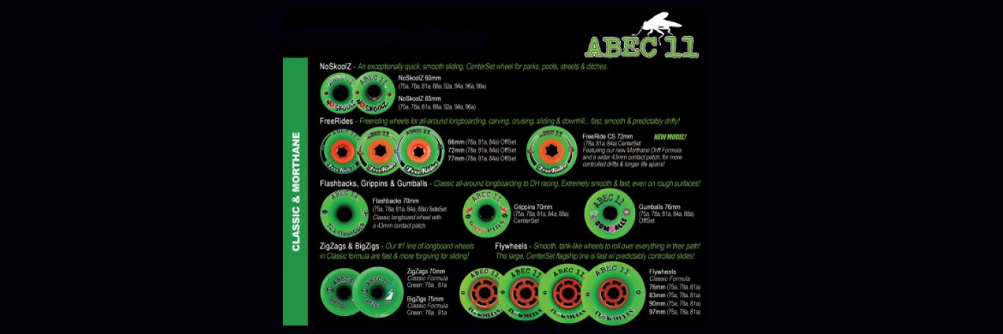 NoSkoolz, Flashbacks, Grippins, Gumballs, Freerides 72mm et 66mm, Freerides centerset, Centrax, etc.